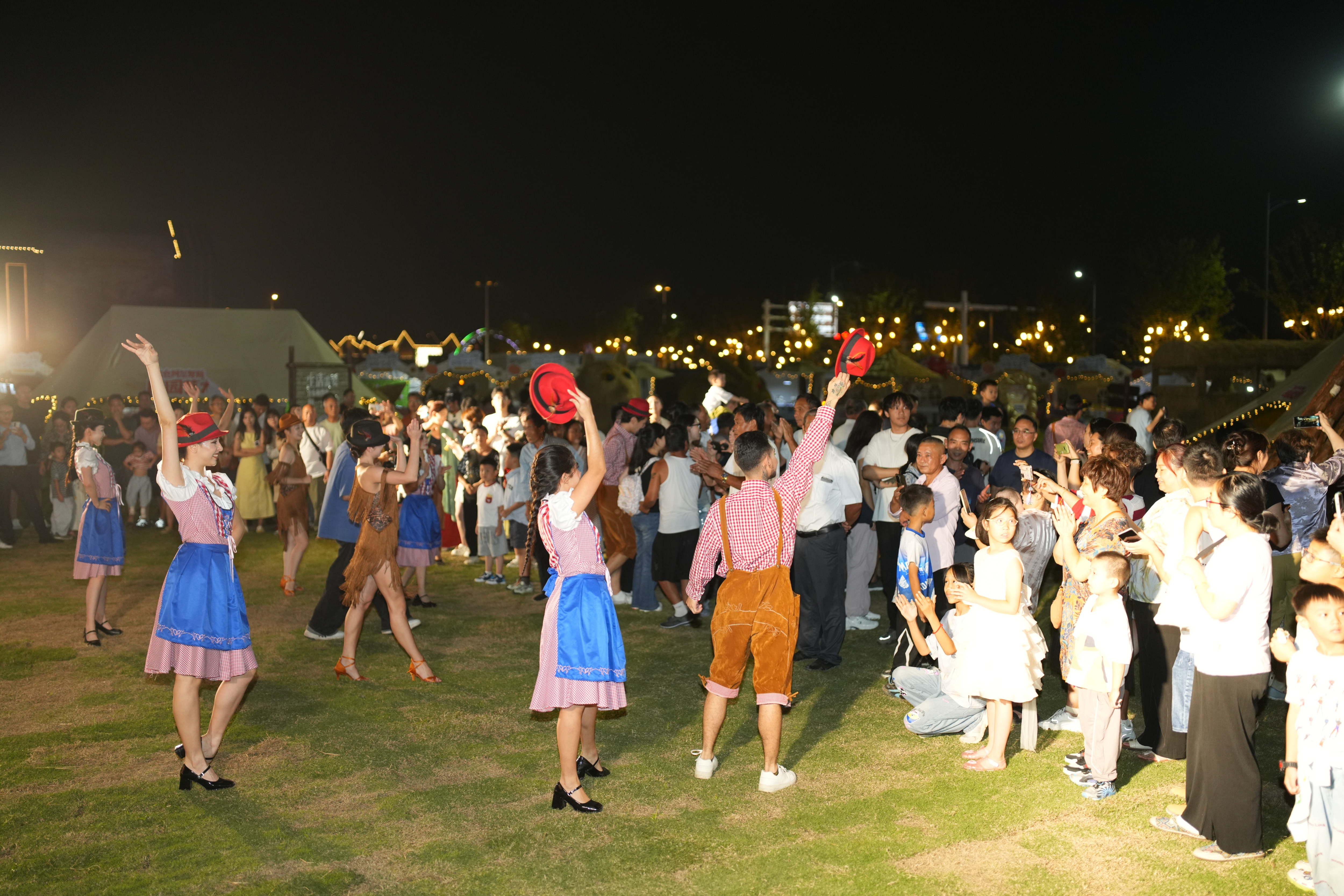 在田园艺趣狂欢区,巨型稻草艺术装置、丰收市集与营地躺平区全天开放,摸鱼抓鸭、手作咖啡、主题演艺、萌宠撒欢等多元活动轮番上演,构建一站式家庭欢乐空间。孩子们在自然中自由探索,大人们在秋日暖阳下享受静谧闲暇,人与自然、人与宠物的温情互动在此刻悄然流淌,诠释现代家庭对“慢生活”的向往。