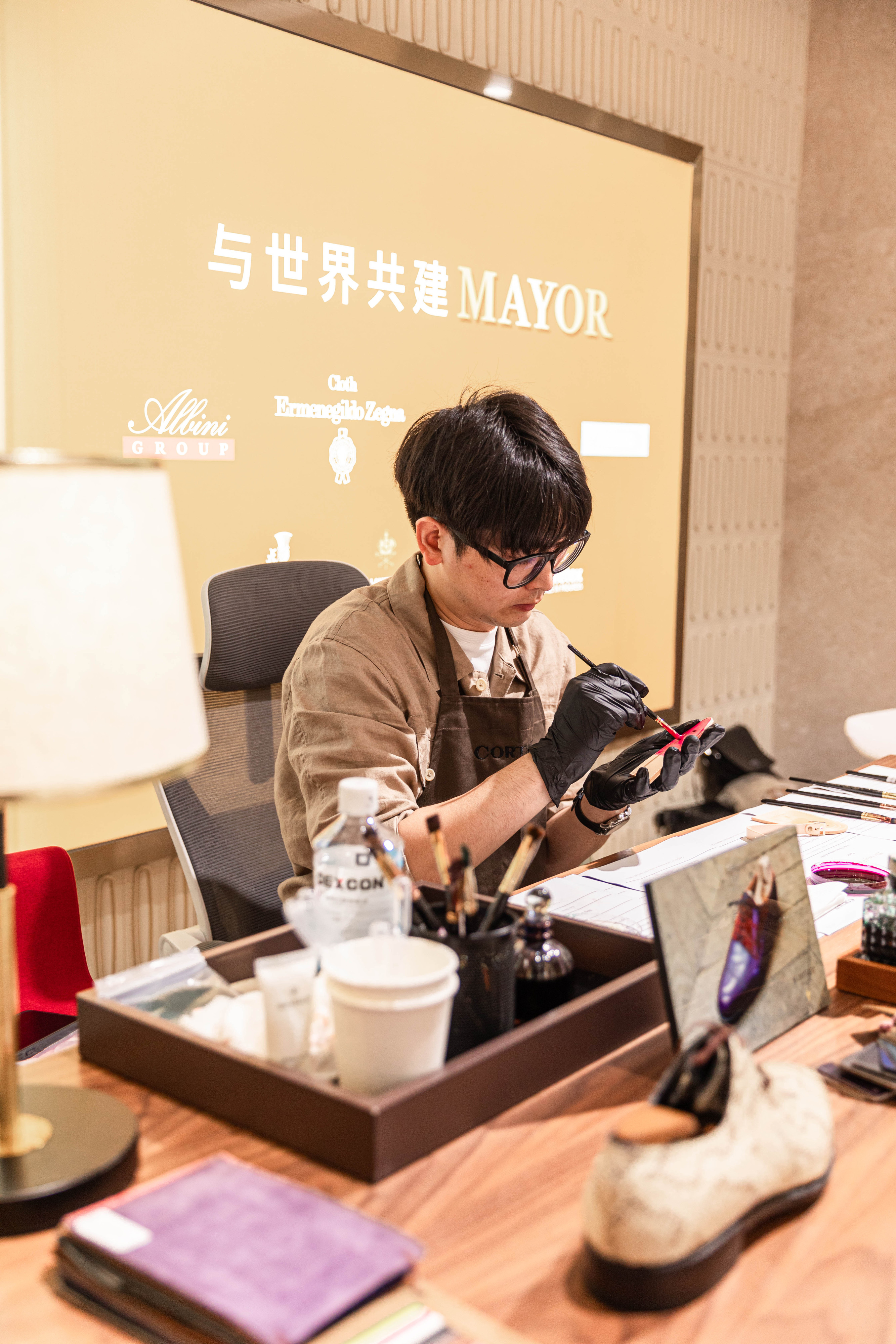 MAYOR品牌秋冬系列新品也同步亮相,延续“高端人群、高端产品、高端服务”定位,为精英群体提供彰显身份的个性化着装选择,进一步强化会馆“商务形象顾问”的角色。来自法国巴黎的奢华制鞋工坊CORTHAY现场展示手工擦色工艺,带给现场嘉宾一场视觉与匠心的双重体验,近距离感受”一双好鞋如何成就一身品位”的细节魅力。