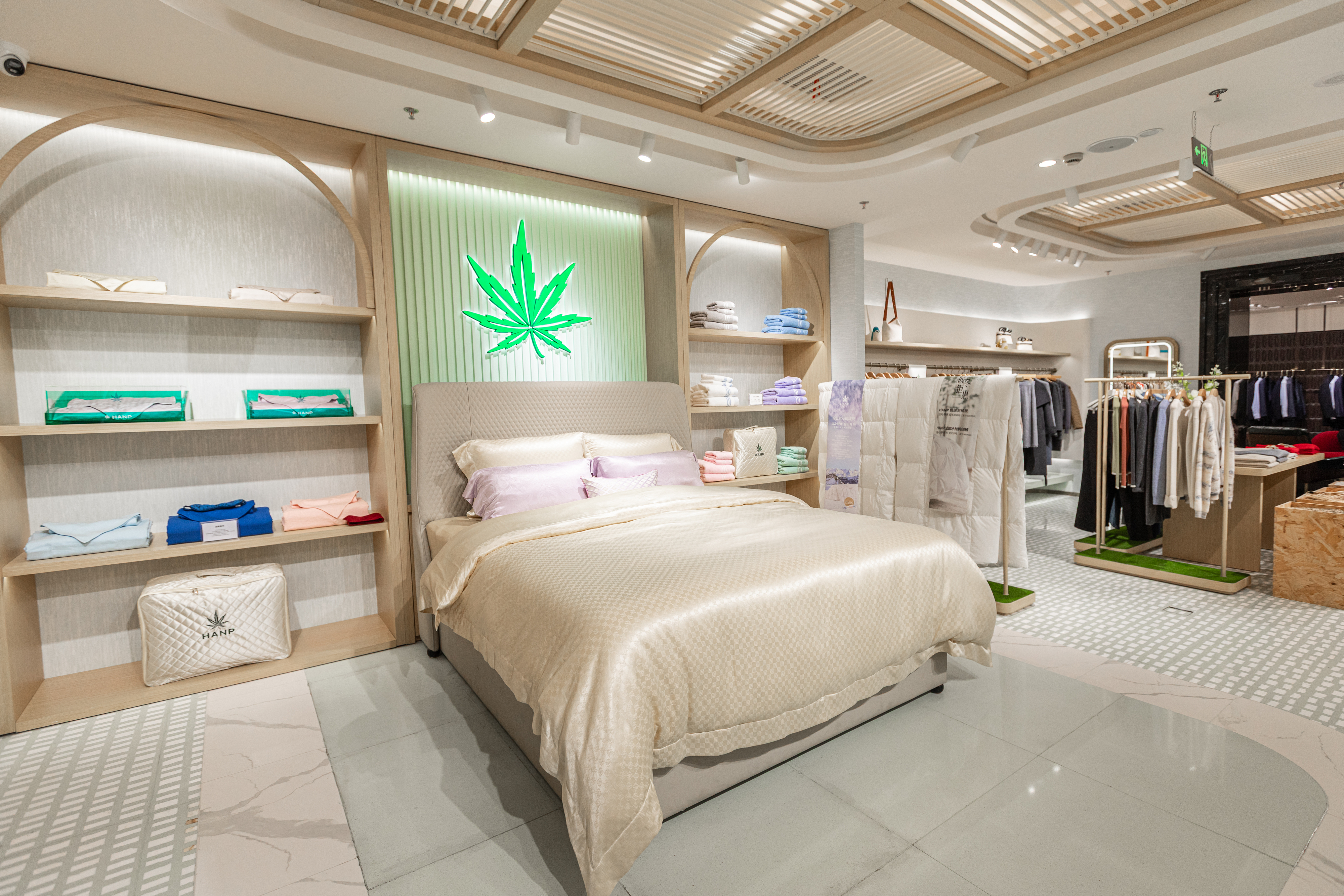 汉麻世家品牌今年秋冬也聚焦羽绒新品,主推法国进口木拉鸭绒羽绒被。原材料产自古纳瓦尔王国的高地,以传统养殖模式饲养的野外草地农场生长的木拉鸭,羽毛呈球状结构,饱含空气,吸湿蓄暖,成为现场嘉宾过冬的暖心礼品。